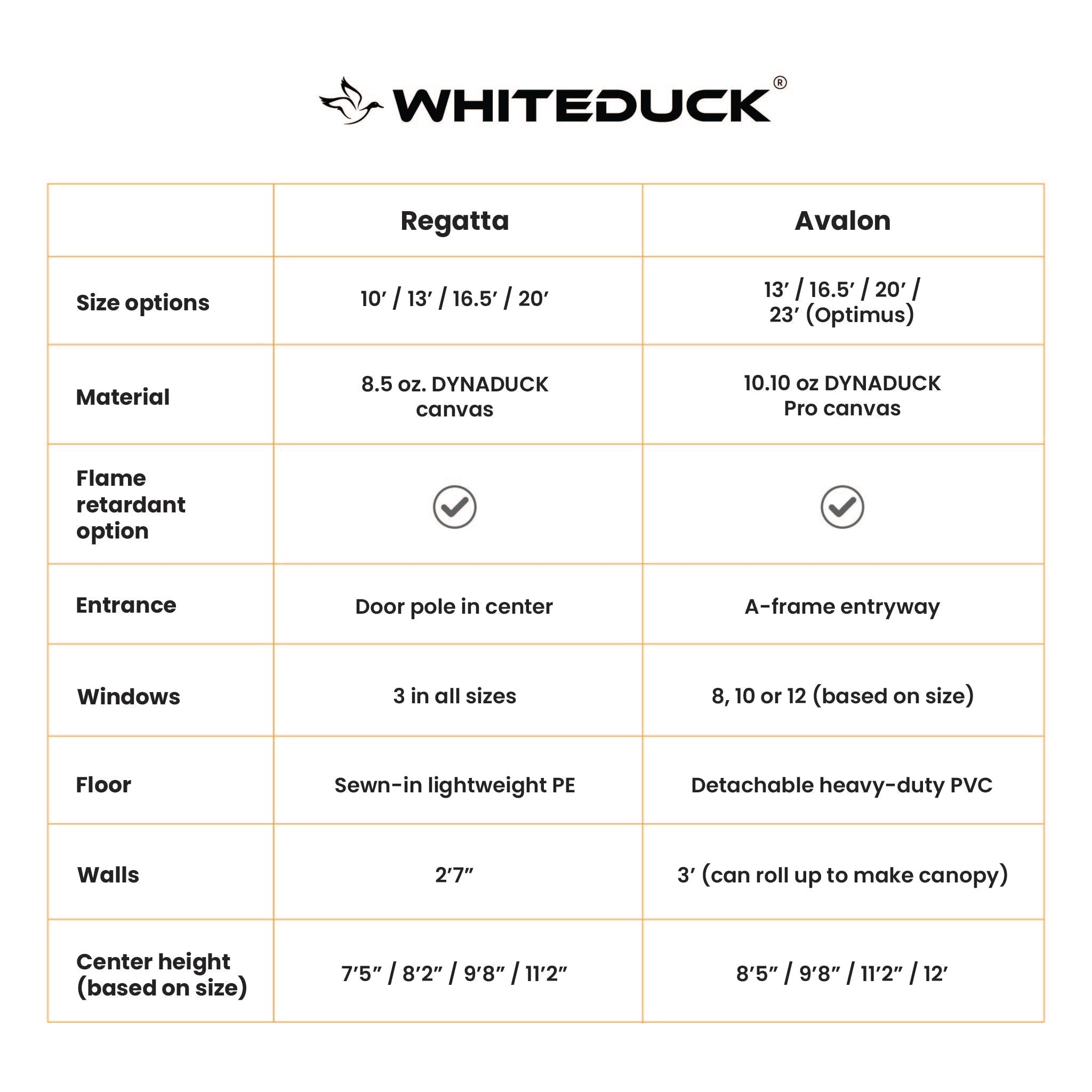• DYNADUCK fabric, with 8.5 oz army duck cotton canvas and a water repellent, mold & UV resistant finish